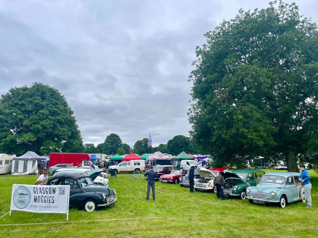 It was an early start on the Saturday morning, with 8.30am departure for Glamis Castle. Once we agreed on which pitch we should be, the lay out of the cars began, the club gazebo was assembled, banners displayed and flag hoisted. Another two other club members then arrived make it a ten cars from the Glasgow Moggies!